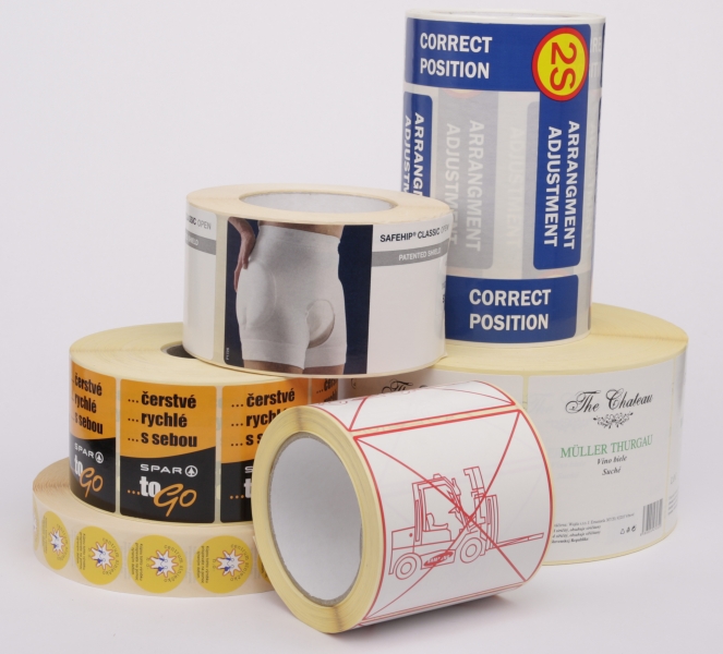 Ova vrsta etikete se proizovdi i štampa na raznim vrstama materijala, od standarnih mat etiketa, preko polusjajnog i sjajnog papira, do raznih plastičnih materijala kao sto su PP, PE, PET, PVC sa kombinacijom raznih vrsta lepkova, u zavisnosti od same primene etikete koji variraju od suvih skladišta, do otpornosti na razne hemijske i spoljašnje uticaje.